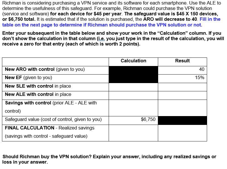 Solved Richman Is Considering Purchasing A Vpn Service And Chegg Com