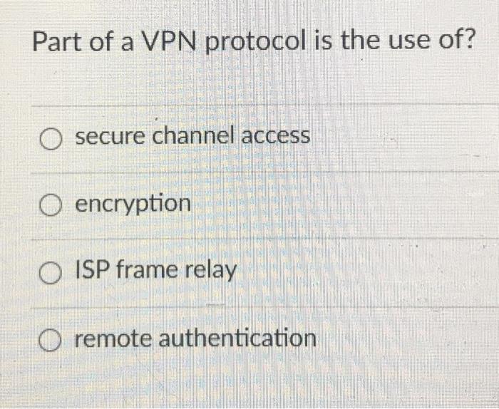 Solved Part Of A Vpn Protocol Is The Use Of Secure Channel Chegg Com